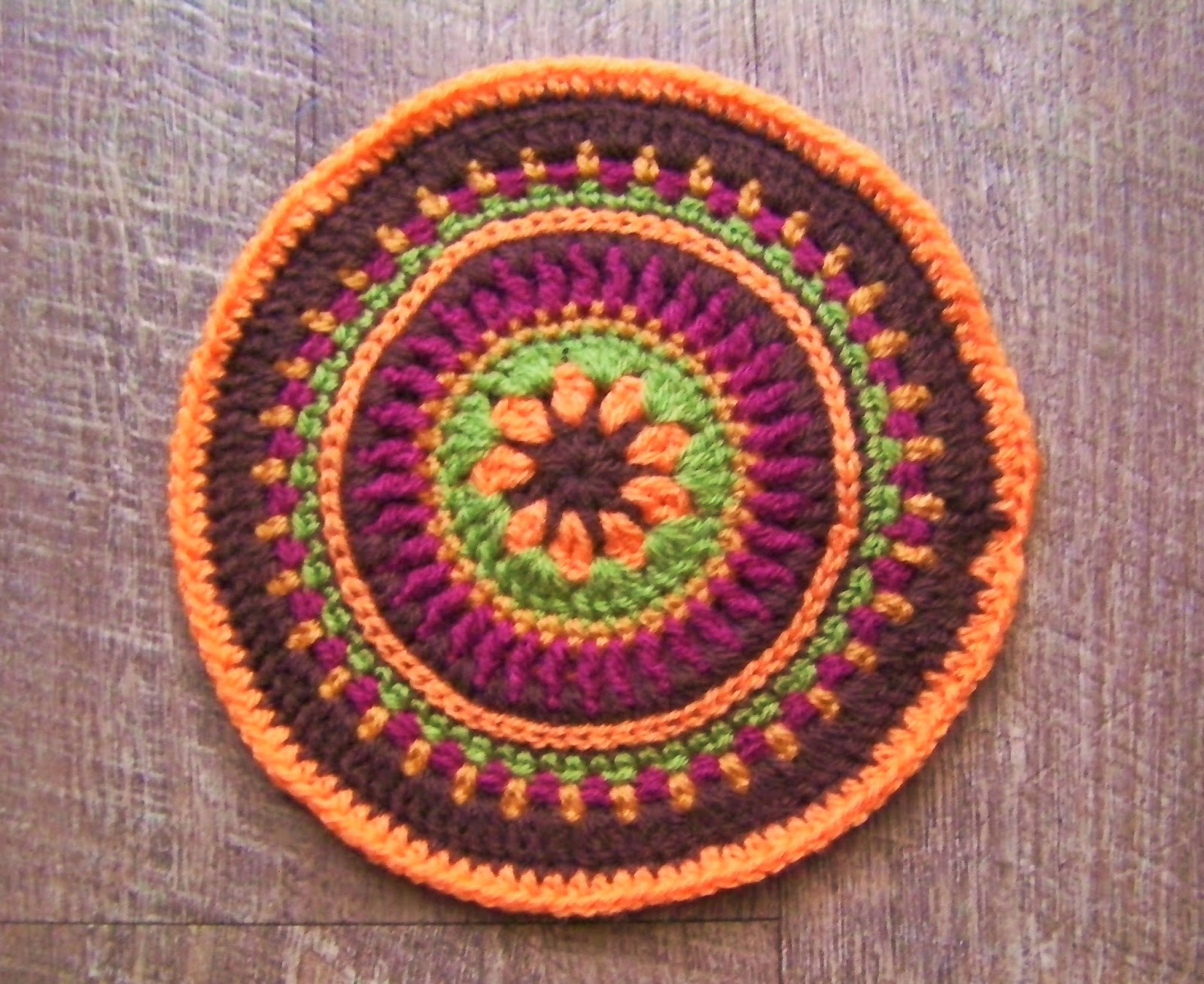 Gosto desta selecção de cores. Deverei ter mais cuidado no acabamento da última volta... reparem como na zona de união a agulha trabalhou ligeiramente abaixo... as próximas ficarão bem!