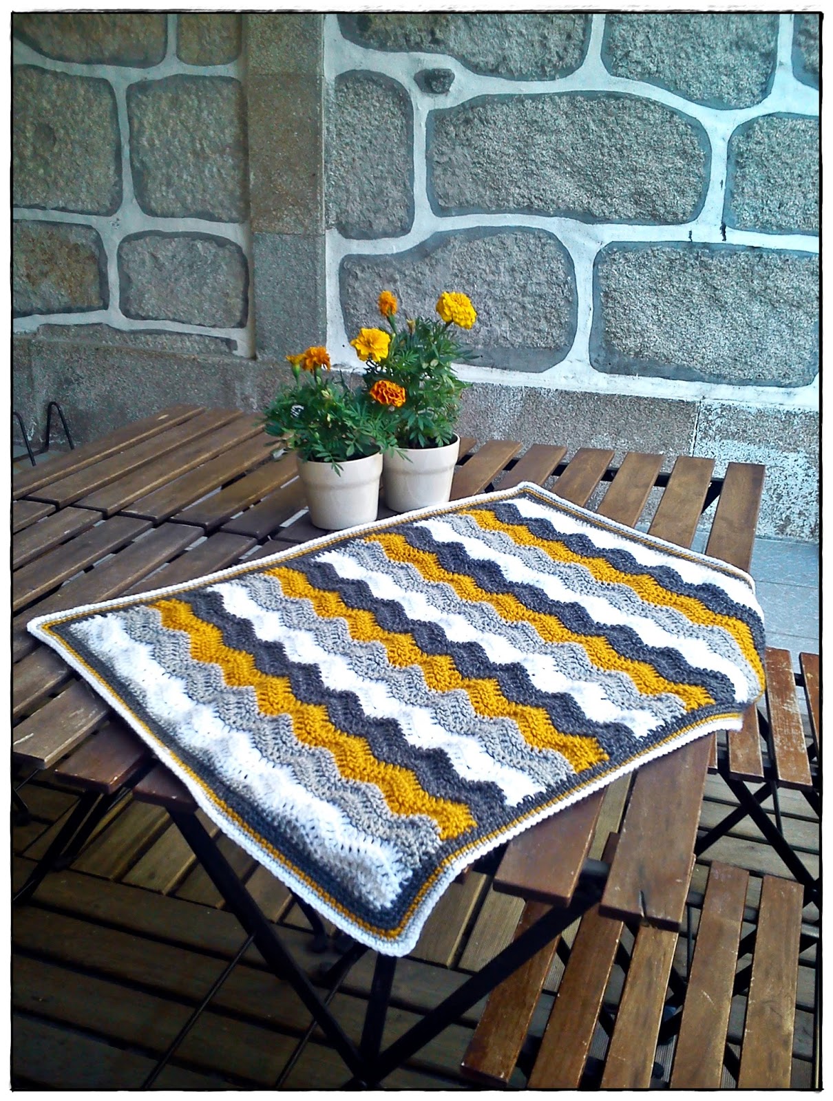 Terminei mais uma das pequenas mantas. A colecção cresce a olhos vistos. Se há padrão de crochet que me enche as medidas é o zig-zag. É bem tradicional e sempre bem-vindo aos meus olhos. Gosto tanto do efeito das ondas na mistura de cores. Esta nova menina que nasceu esta sexta chama-se Manta Mostarda... falta de imaginação com o nome, não? Mas sabem, olhei-a quando a terminei e qual é a cor que mais salta aos olhos? O amarelo mostarda! E ficou assim, não consegui pensar noutro nome.