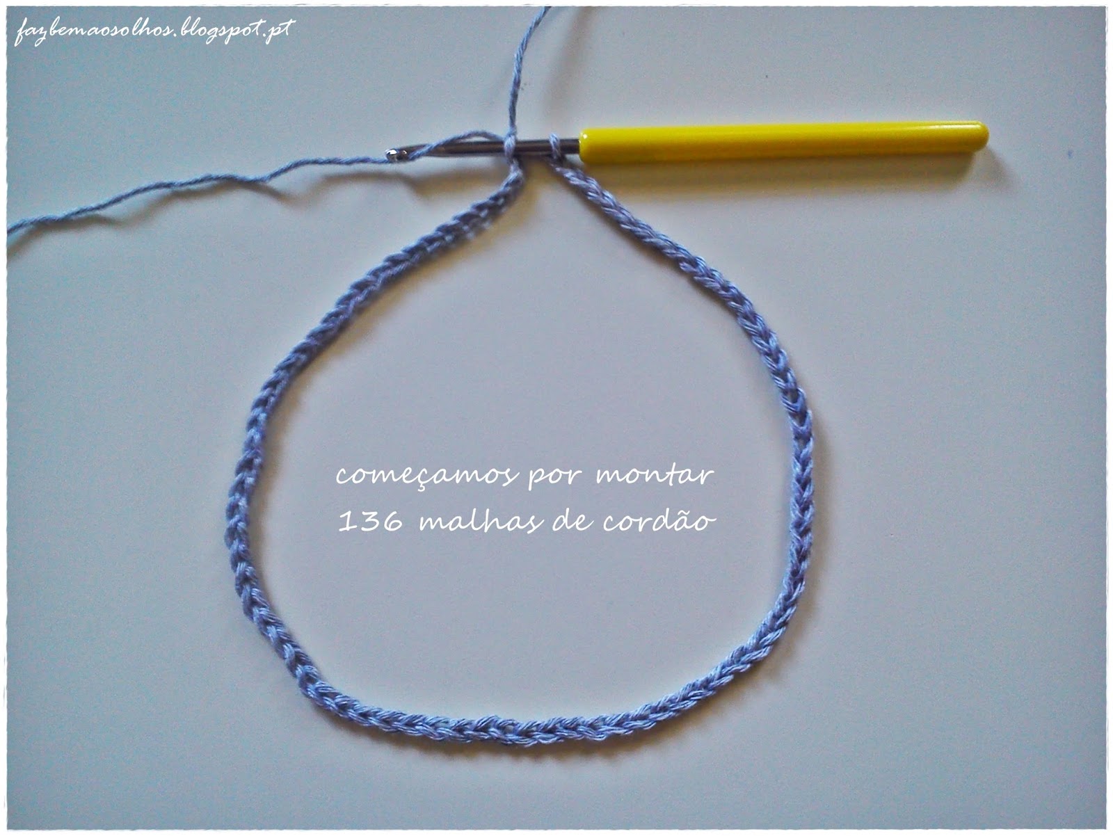 de um V e 28 pontos altos, sendo que o último ponto alto fecha no ponto que se apresenta (o do início da 2ª volta). Portanto, no caso vamos ficar com 140 pontos altos no total, a contar com os pontos que formam os V. Considerem as primeiras duas voltas as mais difíceis, isto porque caso se enganem numa única malha, lá terão de voltar a contar tudo até acertarem... a mim aconteceu-me umas quantas vezes e tive de desmanchar e voltar a fazer até acertar. Caso vos aconteça têm de ser pacientes e desmanchar as vezes necessárias, porque se não o fizerem correm o risco de ficar, no final, com uma camisola com o decote todo torto e mal formada e não querem isso.