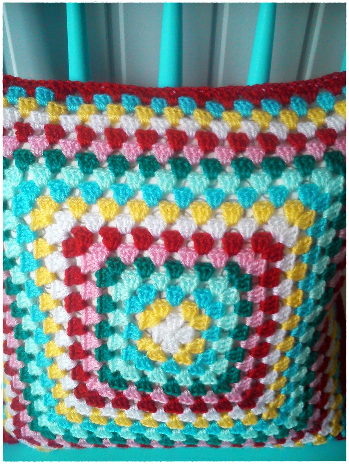 Sabem, a mini-mini já chegou ao seu destino! E a Val já me enviou fotos, aaahhh ficou tão gira no landau! Sei que um destes dias vai mostrar-nos como ficou, vou aguardar para que seja ela a revelar o resultado. Acontece que a mini-mini é tão mini que os novelos sobraram praticamente inteiros. E depois de ter experimentado aquela conjugação de cores e vê-las a sorrir para mim, não me apeteceu guardar os novelos e decidi continuar com eles na cesta e fazer umas almofadas granny square que já há muito andava a querer experimentar. Uma já está pronta e é a protagonista da publicação de hoje. A outra sofreu uma pausa, hei-de terminá-la.
