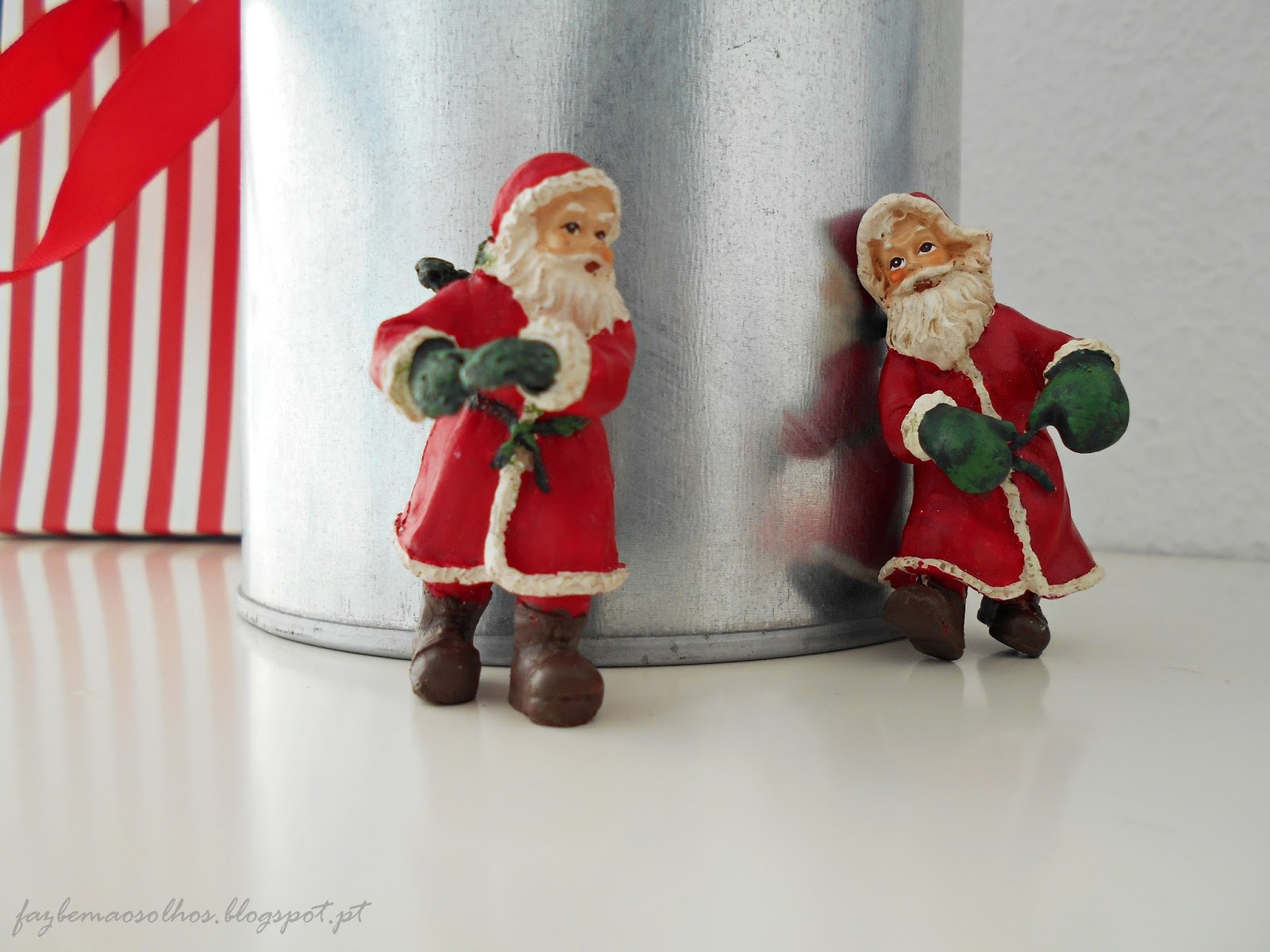 Aqui por casa iniciou-se a contagem decrescente para oficializarmos a época natalícia. No próximo fim-de-semana vamos fazer a árvore de Natal. Para já, entretive-me com alguns elementos próprios da época.